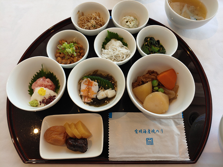 기본적으로 해산물 위주 반찬이 많이 나옵니다. 누마즈의 다른 호텔(대표적으로 리버사이드 호텔)에서도 전갱이구이나 멸치조림 등이 나오는데 그거보다 훨씬 고급스럽게 나옵니다. 저처럼 해산물을 좋아하신다면 석식은 패스하시더라도 조식만큼은 먹어보시기를 추천합니다.