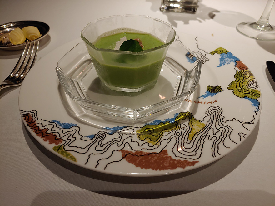 코스요리 중 가장 마음에 들었고 신선한 맛의 스프가 나왔습니다. 흡사 브로컬리 스프처럼 생겼는데 맛은 전혀 다릅니다.