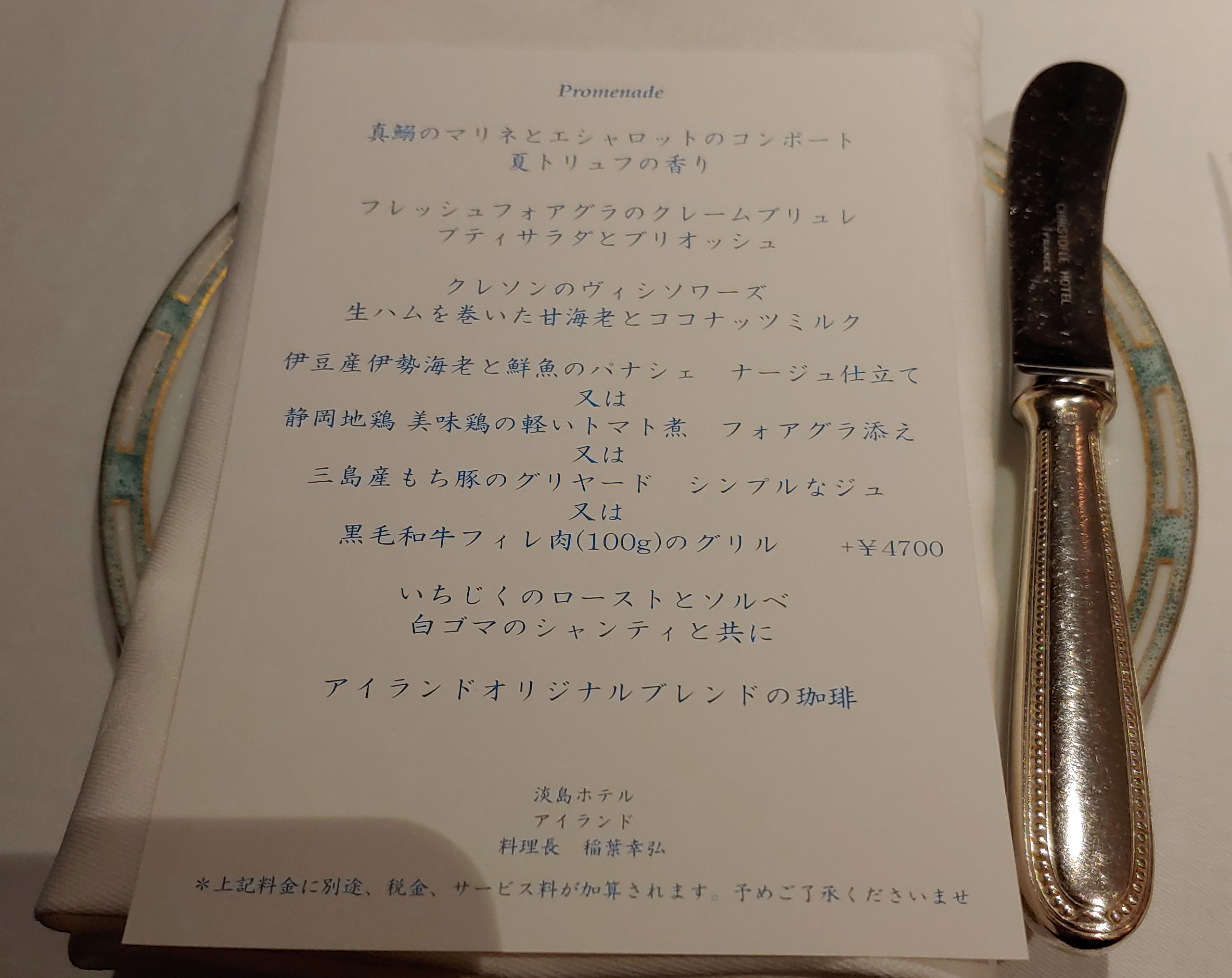 제가 예약한 코스는 양식 하프코스였습니다. 조식이 일식이기도 했고 이왕 코스요리라면 양식이 좋지 않을까해서 선택했습니다. 관련된 일화는 이전글에서.