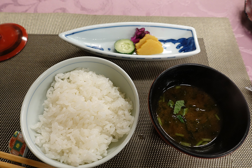 석식도 그랬지만 조식은 유독 양이 적게 느껴집니다. 전갱이 구이를 제외하면 도대체 밥을 뭐랑 같이 먹어야할지 고민되기 시작합니다. 물론 우리나라처럼 밥상에 반찬이 많이 나오는 구조가 아니지만 절임류가 많아도 너무 많은게 아닌가 싶습니다. 아와시마처럼 가정식 대표 반찬인 니쿠쟈가나 낫토 등이 있었다면 밥을 더 맛있게 먹었을 것 같습니다.