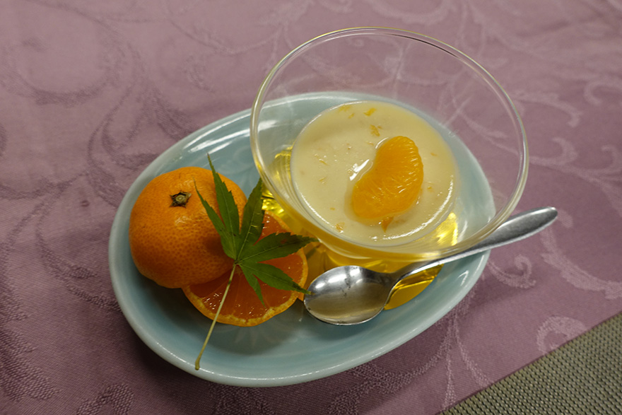 마지막을 장식하는 감귤 푸딩과 귤. 이때가 12월이었기에 귤도 제철이라 맛있었고 푸딩도 맛있었습니다.