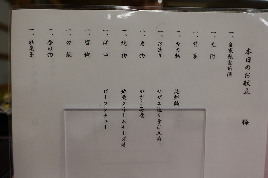 대신 처음 주는 차에서 볼 수 있듯이 해산물에서 시작해서 해산물로 끝나는 식사이기 때문에 해물, 특히 회 등 날것을 못드시는 경우라면 사전에 메뉴 문의를 하거나 다른 숙박으로 알아보시는 것을 추천합니다.