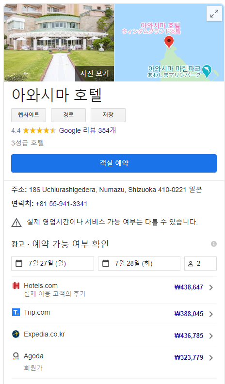 하지만 아직 끝나지 않았습니다. 그럼 일반 호텔 투숙가격은? 그래서 구글을 불러봤습니다.