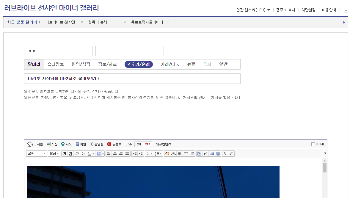 A. 인터넷 커뮤니티(물갤을 설명하기가 참 어렵더라. 5ch같은거라고 하기도 그렇고)에서