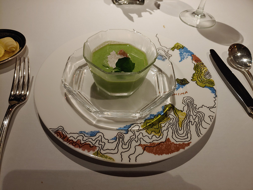 코스요리 중 가장 마음에 들었고 신선한 맛의 스프가 나왔습니다. 흡사 브로컬리 스프처럼 생겼는데 맛은 전혀 다릅니다.